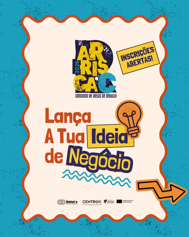 As candidaturas à 14.ª Edição do ARRISCA C estão abertas até 6 de fevereiro de 2026, devendo ser enquadradas numa de 5 categorias: Inovação; Inovação Júnior; Inovação Social; Inovação Sustentável; e Inovação em Cultura, Turismo e Património.